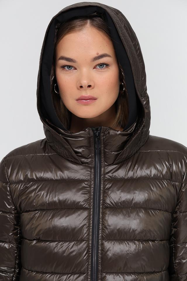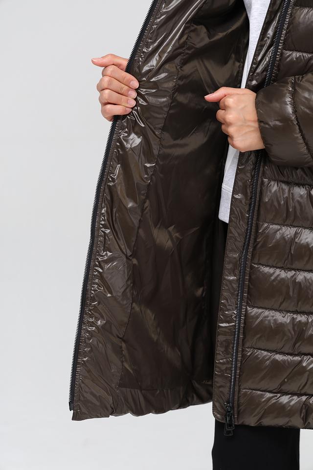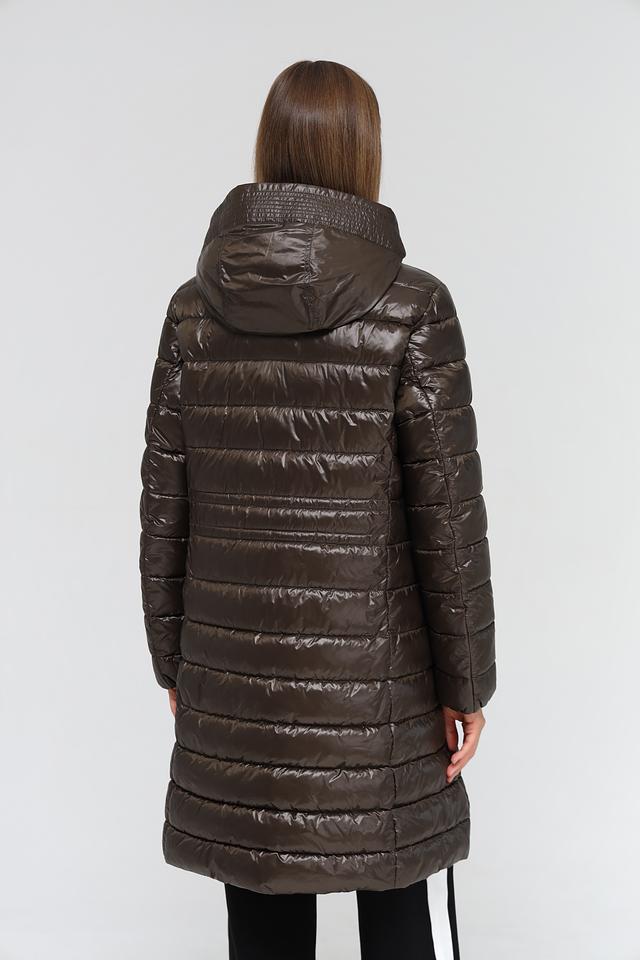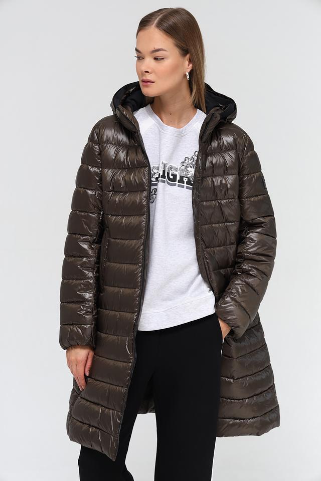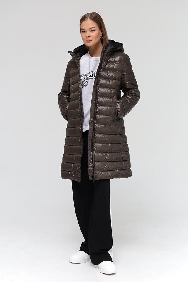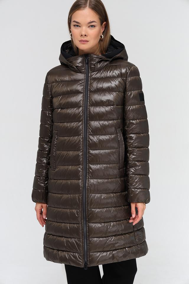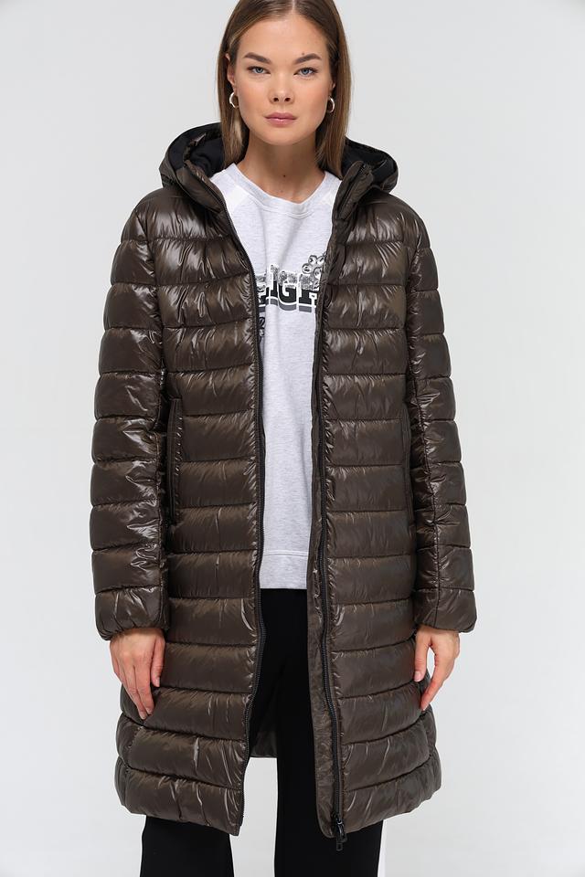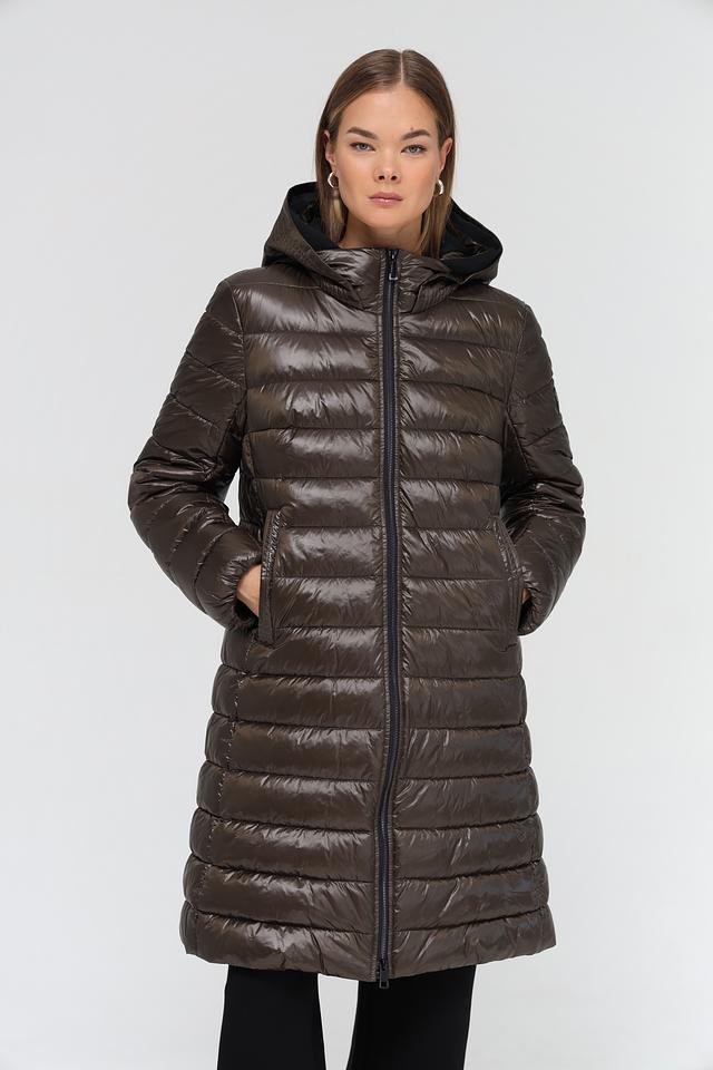 Модель имеет прямой крой и длину до середины икры, что делает ее универсальной для разных типов фигур. Пальто застегивается на молнию, а капюшон обеспечивает дополнительную защиту от непогоды.