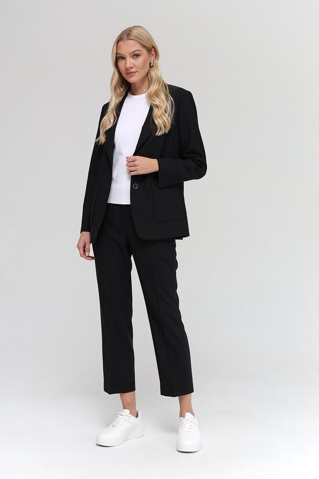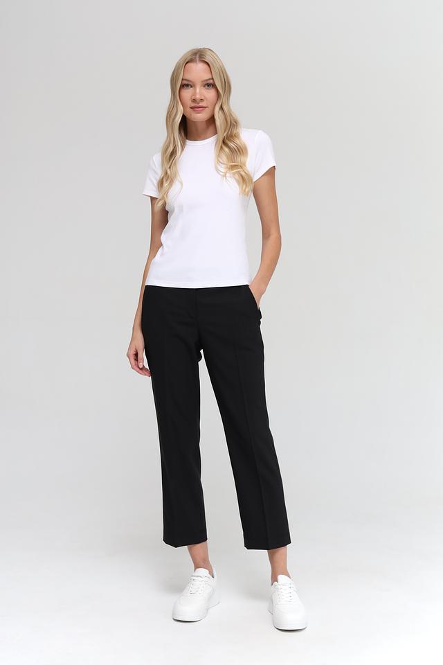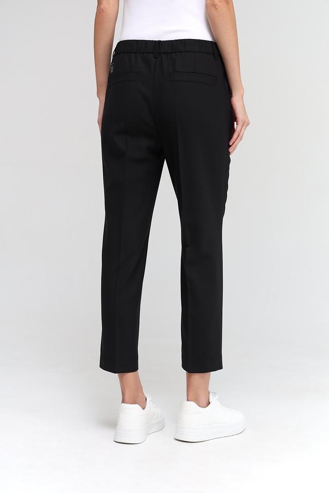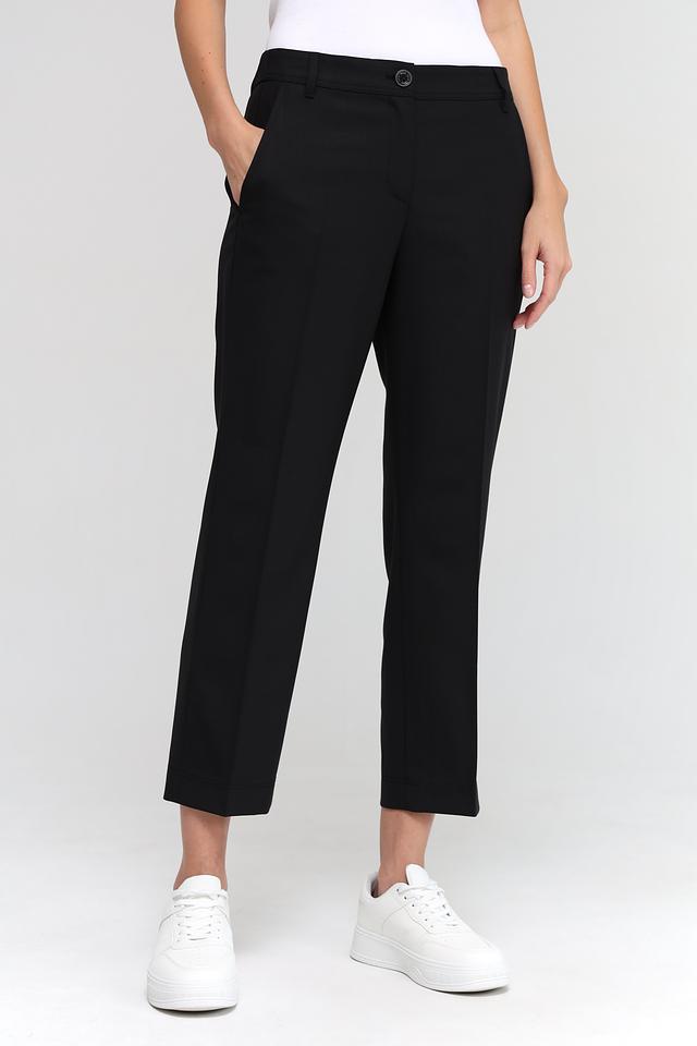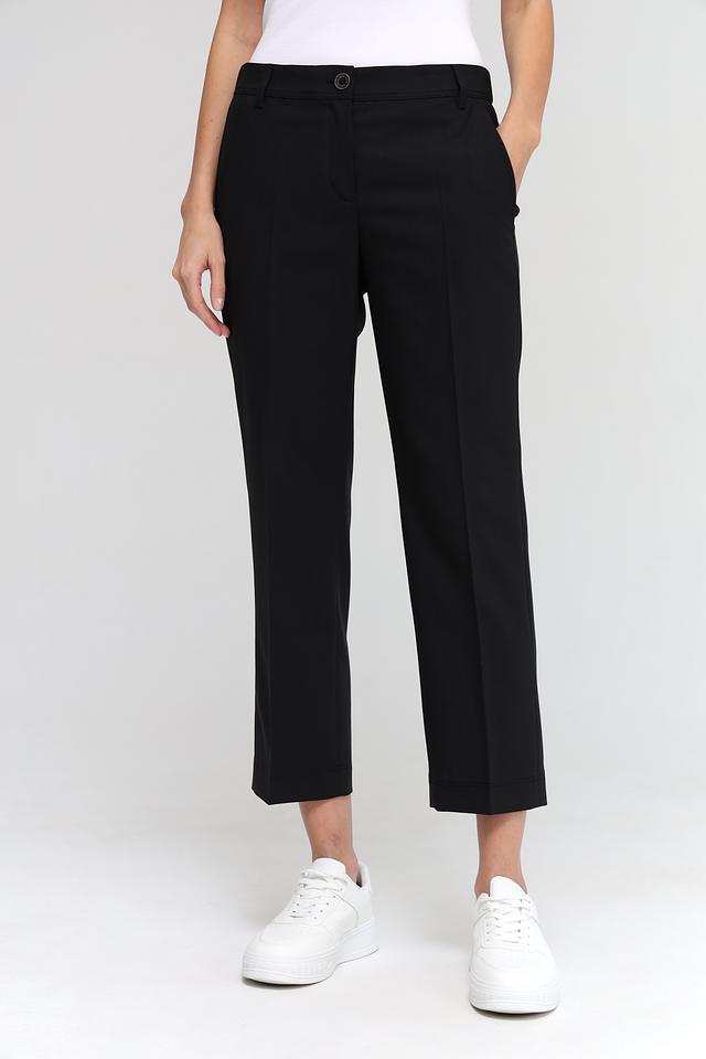 Чёрный цвет делает эти брюки универсальными, позволяя легко сочетать их с различными верхами и обувью. Они идеально подойдут для создания как деловых, так и повседневных образов. Застежка на пуговицу и аккуратные складки добавляют брюкам изысканности.