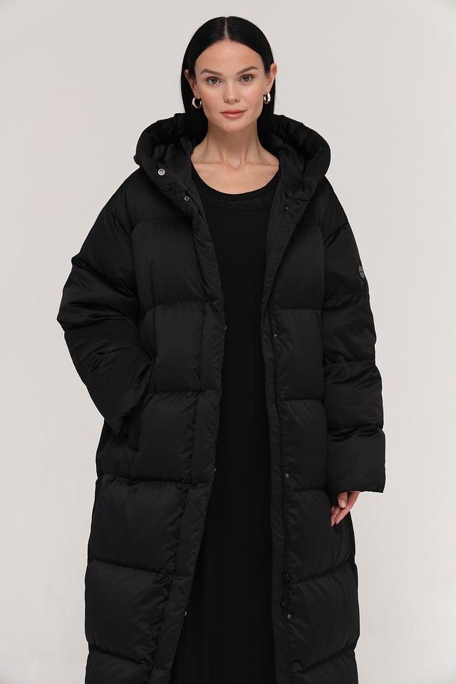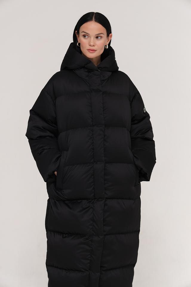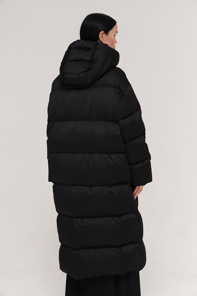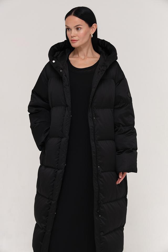 Пальто имеет прямой силуэт и длину макси, что обеспечивает дополнительное тепло и защиту от холода. Стеганая текстура придает изделию современный вид и подчеркивает его функциональность.