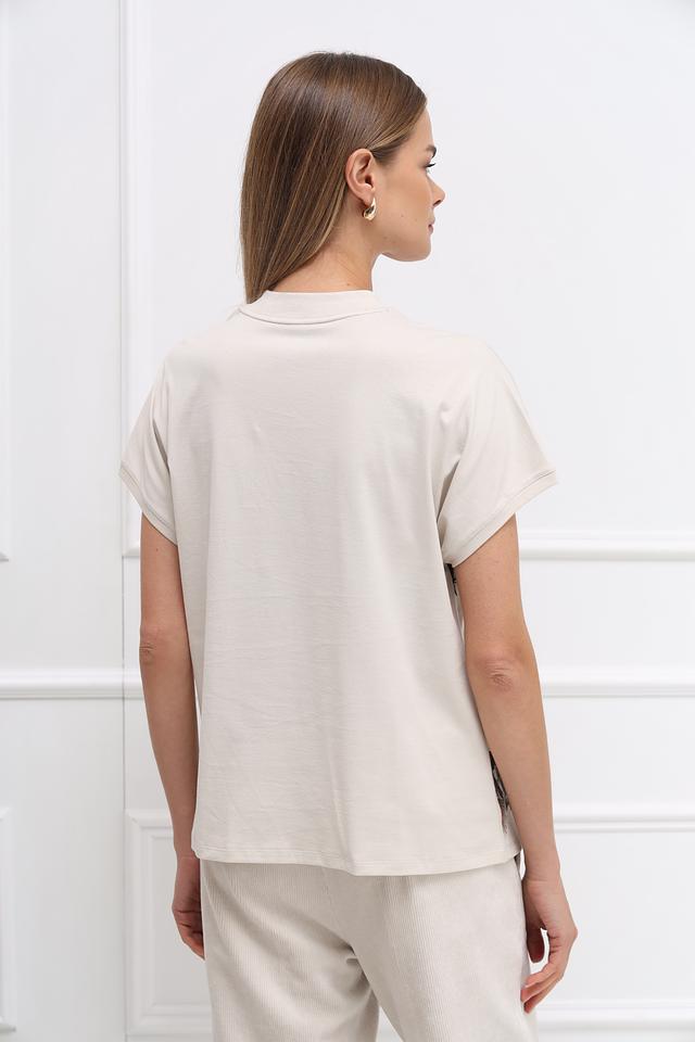 Круглый вырез горловины и короткие рукава делают футболку универсальной и подходящей для различных случаев. Свободный крой обеспечивает свободу движений и комфорт в течение всего дня. Эта футболка идеально сочетается с джинсами, брюками или юбками, позволяя создавать разнообразные стильные образы.