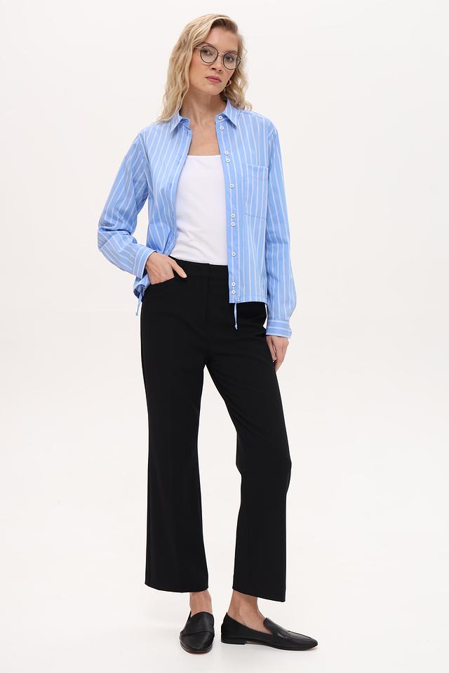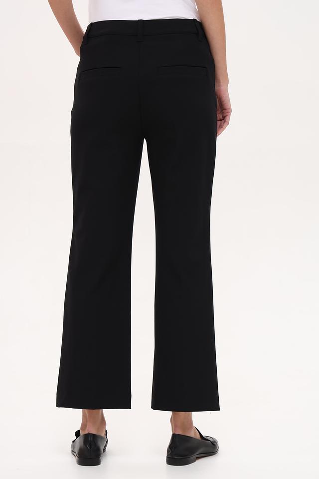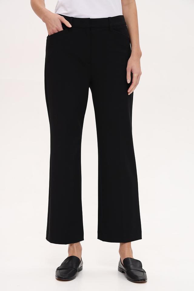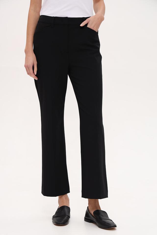 Брюки выполнены из высококачественного сочетания полиэстера, вискозы и эластана, что обеспечивает комфорт в носке, хорошую посадку и устойчивость к сминанию. Прямой крой и клёш от колена визуально удлиняют ноги и создают элегантный силуэт.