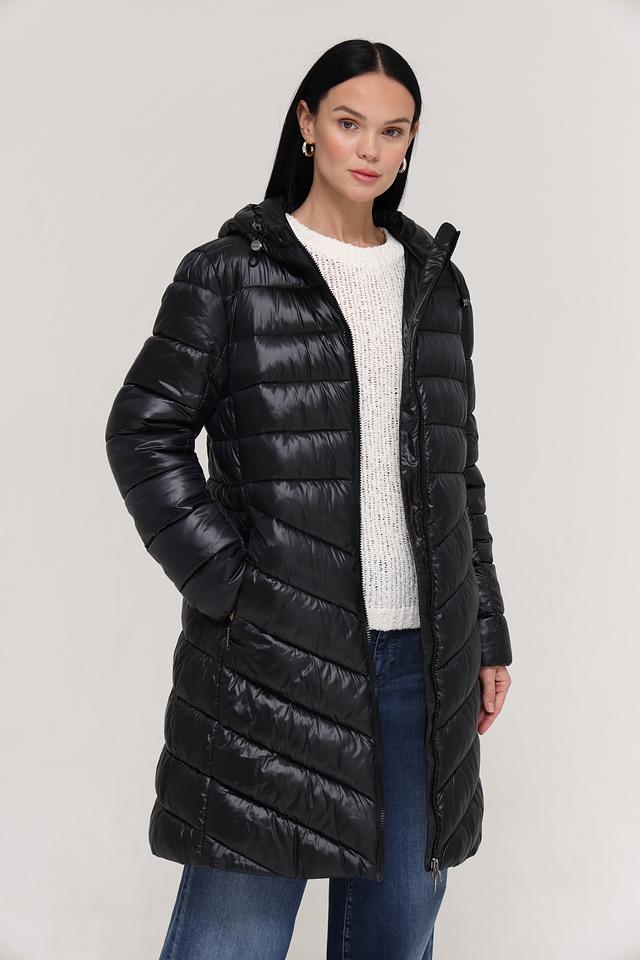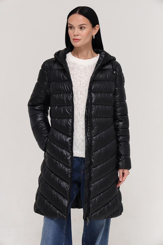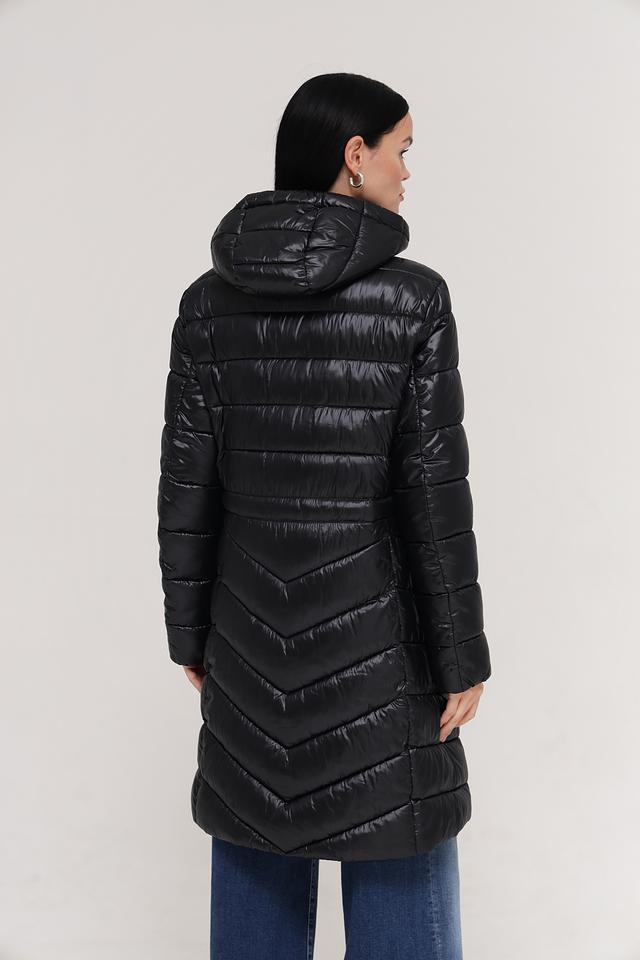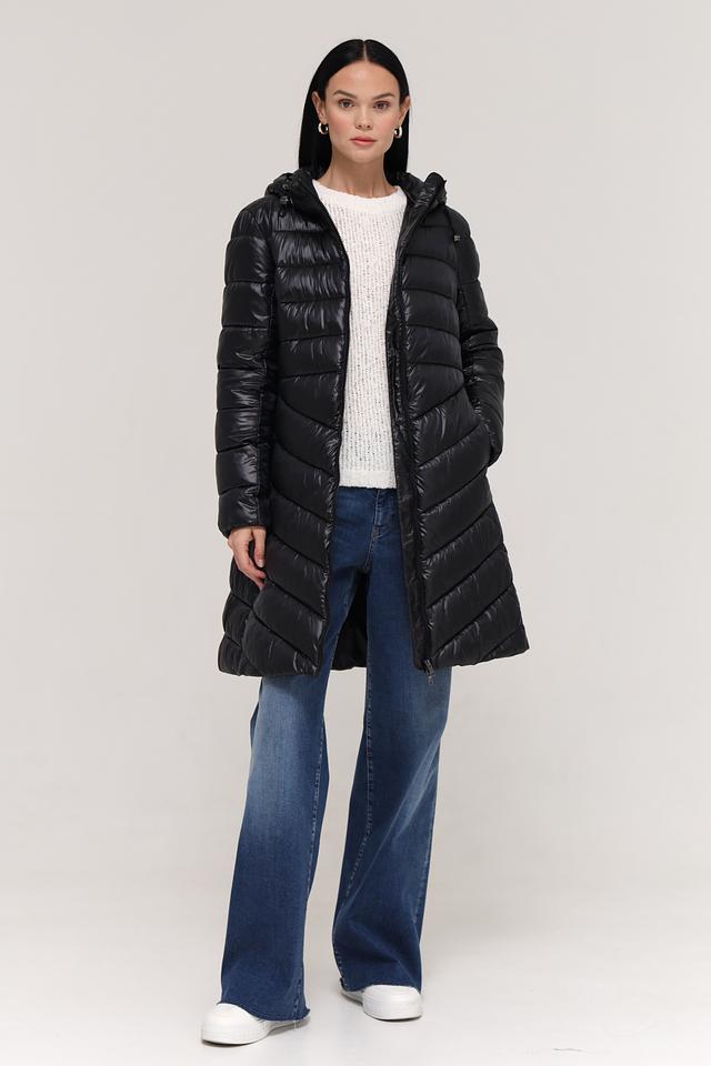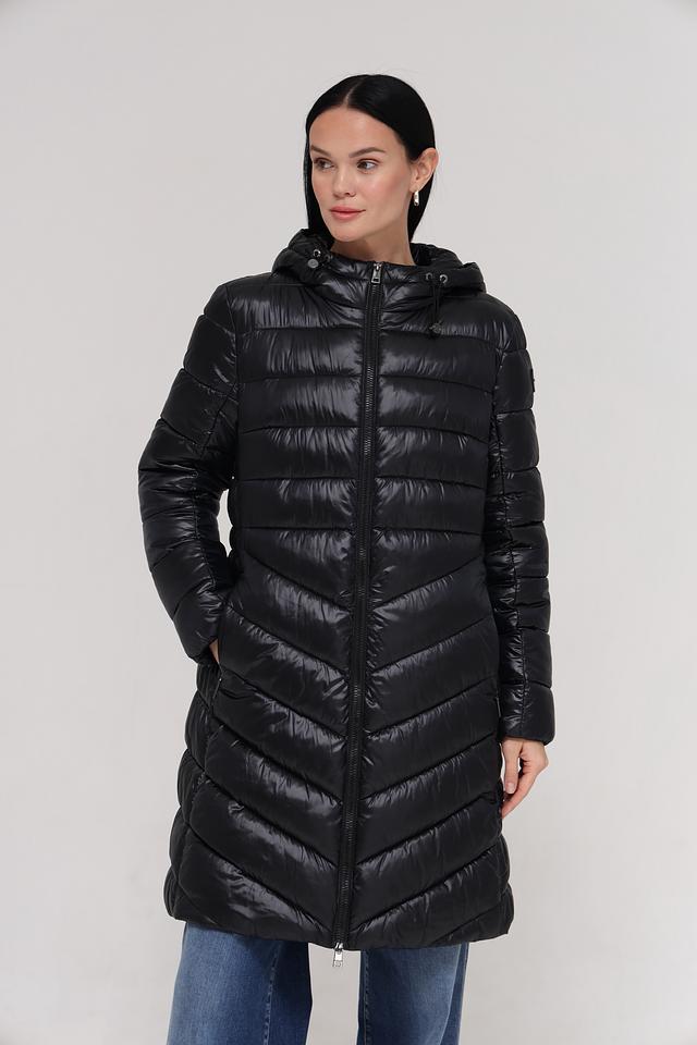 Верхняя часть пальто имеет стеганую текстуру, которая придает ему современный вид и обеспечивает дополнительную теплоизоляцию. Пальто имеет удобный капюшон, который защитит вас от ветра и дождя. Застежка-молния позволяет легко надевать и снимать пальто.