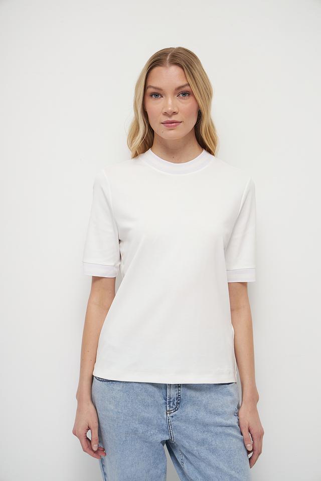 Белая футболка Marc Cain из хлопка с эластаном. Классический крой и округлый вырез делают эту модель универсальной основой для любого гардероба. Состав: 95% хлопок, 5% эластан. Состав: хлопок 95%, эластан 5%
