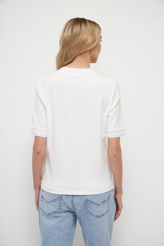Эта белая футболка от Marc Cain станет незаменимой частью вашего повседневного гардероба. Изготовленная из высококачественного хлопка с добавлением эластана, она обеспечивает комфорт и свободу движений.