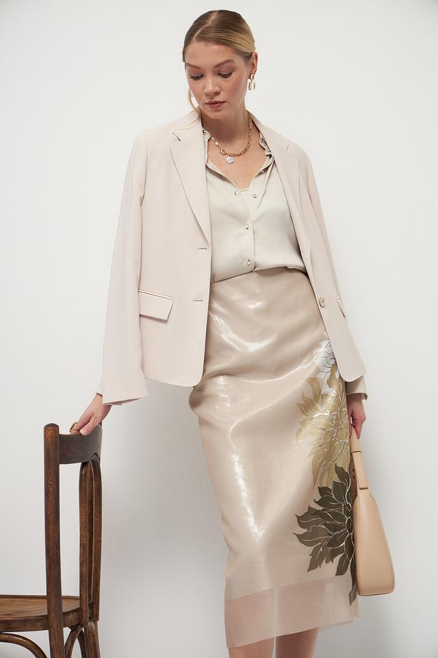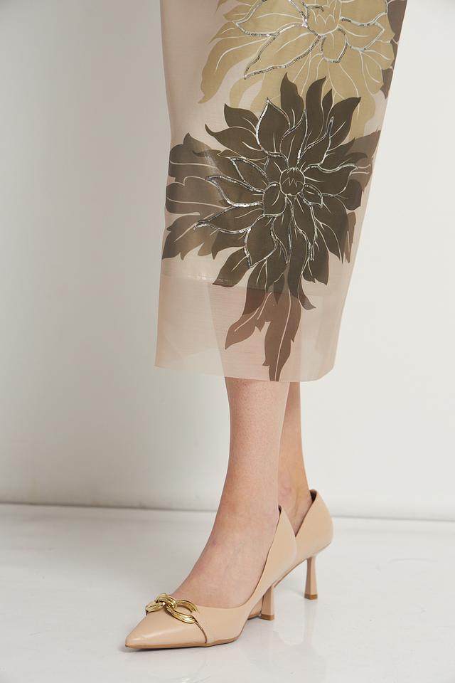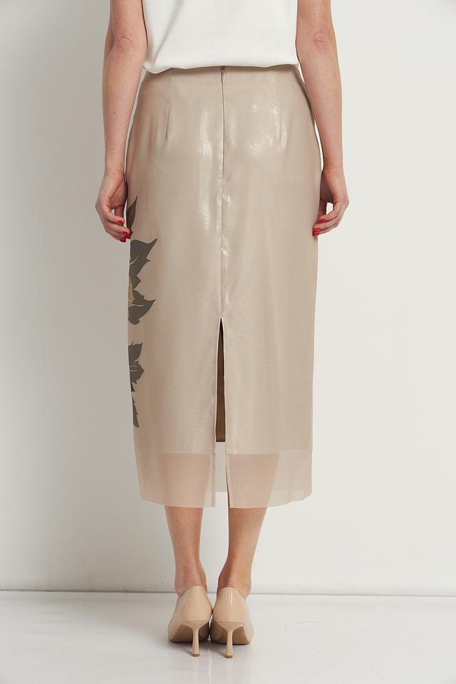 Юбка Marc Cain бежевого цвета с цветочным принтом. Изготовлена из 100% полиэстера, отличается элегантным дизайном и длиной миди. Состав: полиэстер 100%