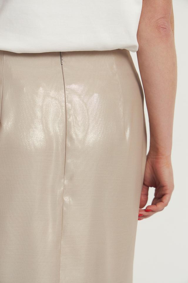 Юбка имеет длину миди и полуприлегающий силуэт, который подчеркивает фигуру. Изготовлена из высококачественного полиэстера, что обеспечивает комфорт и долговечность изделия.