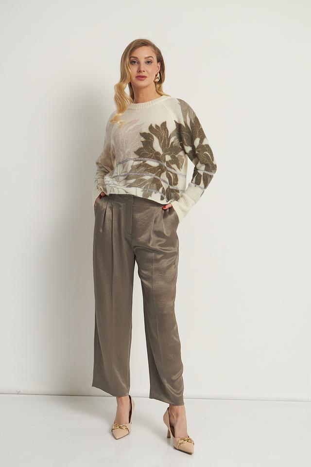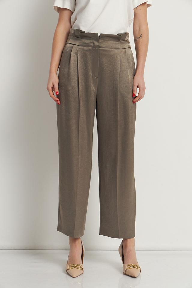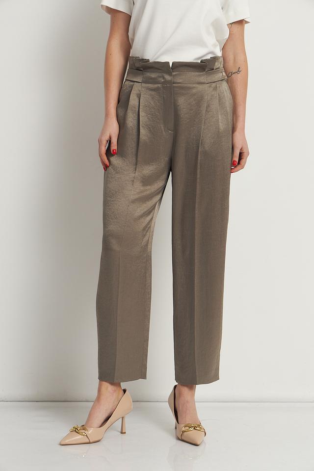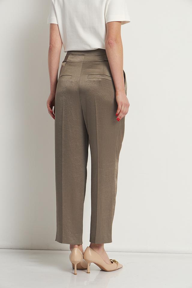 Оливковый цвет брюк делает их универсальными и легко сочетаемыми с различными элементами гардероба. Они прекрасно подойдут для создания как повседневных, так и вечерних образов. Состав ткани: 86% триацетат, 14% полиэстер.