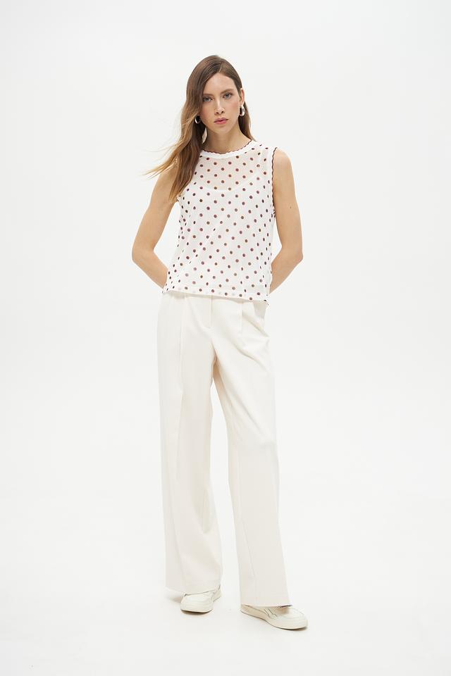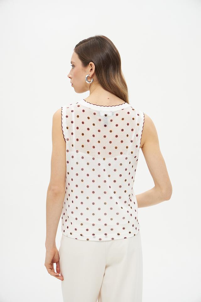 Этот топ от Marc Cain Collections станет прекрасным дополнением к вашему летнему гардеробу. Выполненный в белом цвете с мелким коричневым горошком, он привносит нотку романтики и свежести в любой образ.