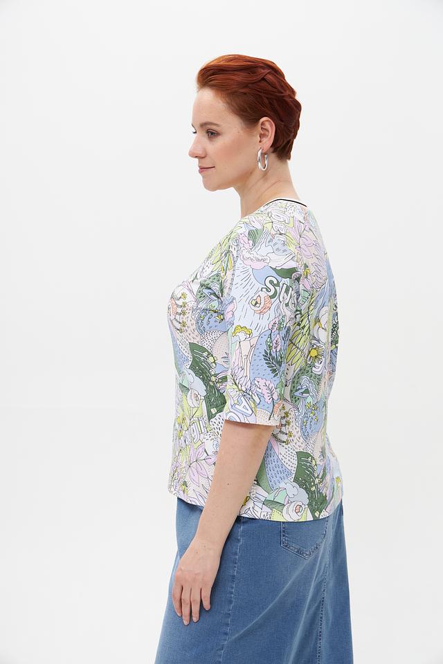 Благодаря своему необычному дизайну, эта футболка станет ярким акцентом вашего образа. Она прекрасно сочетается с джинсами, юбками и шортами, позволяя создавать разнообразные и стильные луки.