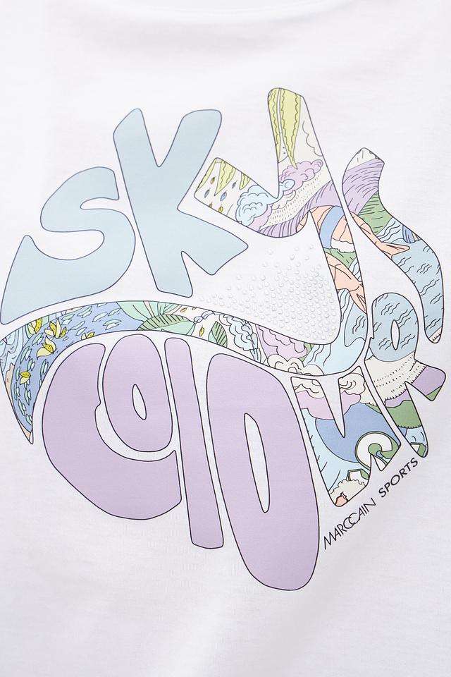 Белая футболка Marc Cain Sports с ярким графическим принтом. Изготовлена из 100% хлопка, обеспечивающего комфорт в носке. Отличный выбор для создания повседневных образов. Состав: хлопок 100%