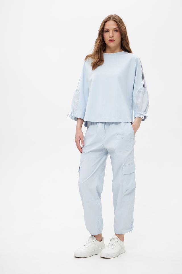 Женские брюки карго от Marc Cain нежного голубого цвета – это стильное и комфортное решение для повседневного образа. Модель выполнена из смесовой ткани с добавлением переработанного полиэстера, что делает её более экологичной. Состав: переработ.полиэстер 63%, полиэстер 37%