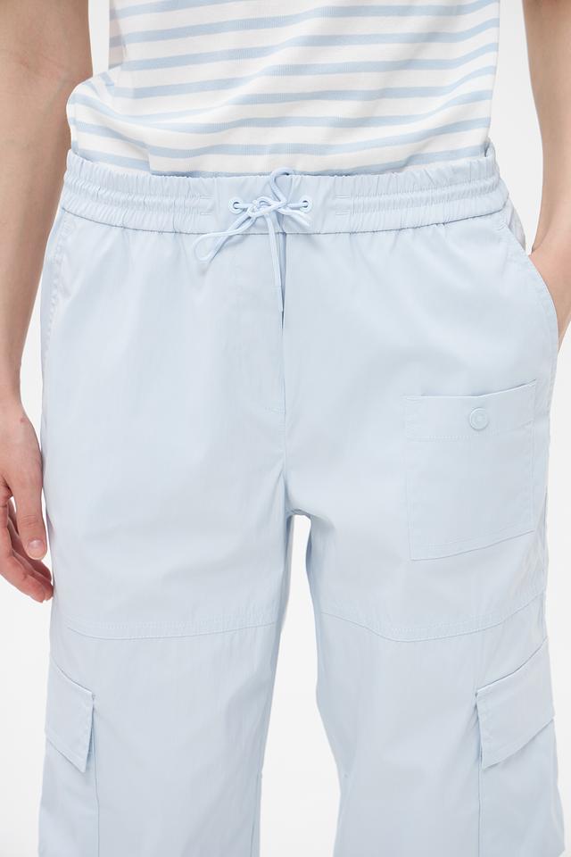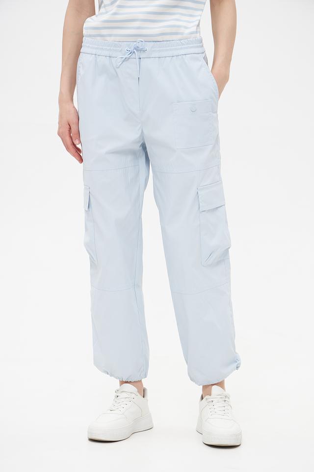 Брюки оснащены функциональными карманами, которые добавляют им практичности. Эластичный пояс с кулиской позволяет регулировать посадку по фигуре. Зауженный книзу силуэт создает современный и стильный образ.