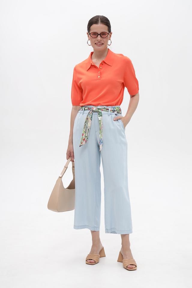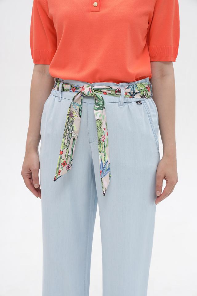 Брюки имеют свободный крой, который не сковывает движения. Высокая посадка и эластичный пояс обеспечивают идеальную посадку по фигуре. Оригинальный пояс с ярким цветочным принтом добавляет образу женственности и индивидуальности.
