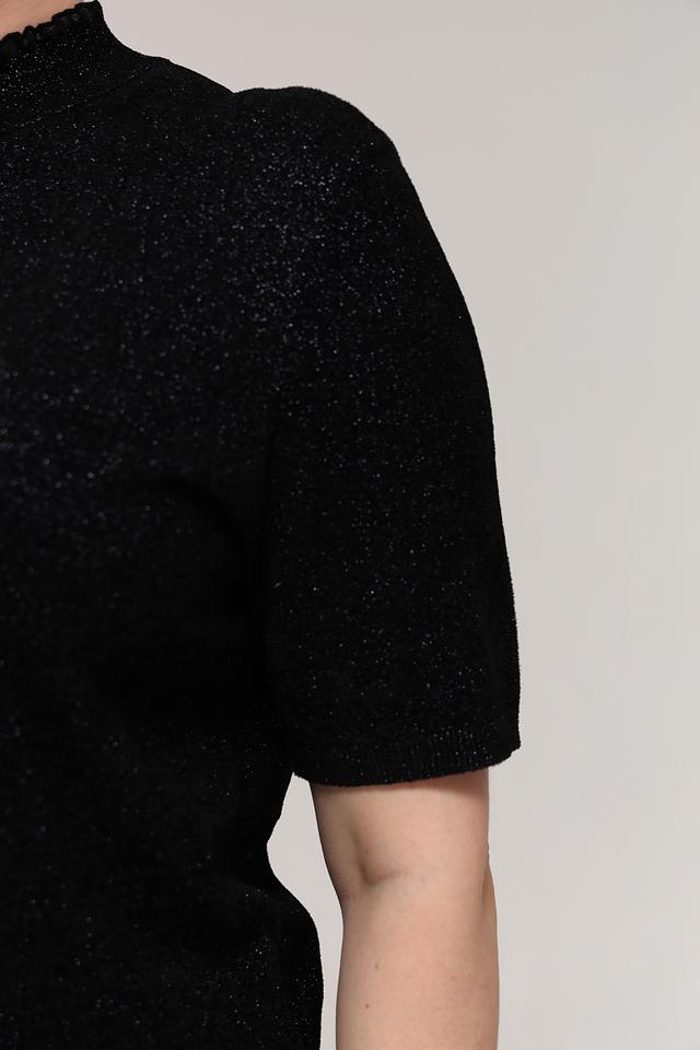 Чёрный пуловер от Marc Cain, выполненный с добавлением пайеток, отличается короткими рукавами и высоким воротником-стойкой. Модель из полиамида, вискозы и металла станет стильным дополнением к вашему гардеробу. Состав: полиамид 44%, вискоза 42%, металл 14%