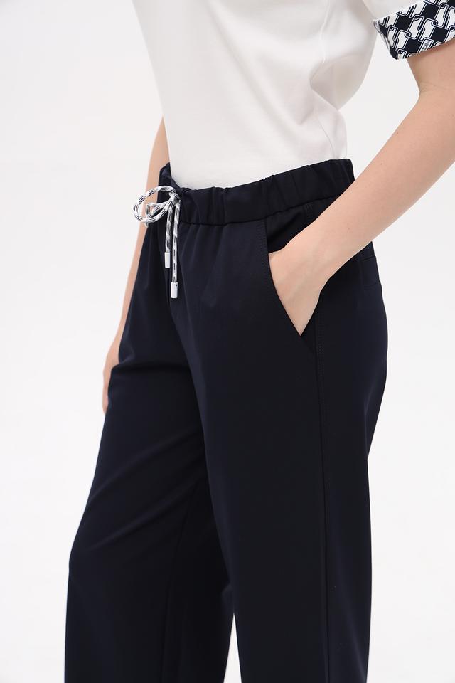 Темно-синие брюки от Marc Cain Sports – комфортная модель с завязками на талии. Изготовлены из вискозы, полиэстера и эластана, обеспечивающих удобную посадку и свободу движений. Идеальны для создания повседневных образов. Состав: полиэстер 67%, вискоза 29%, эластан 4%