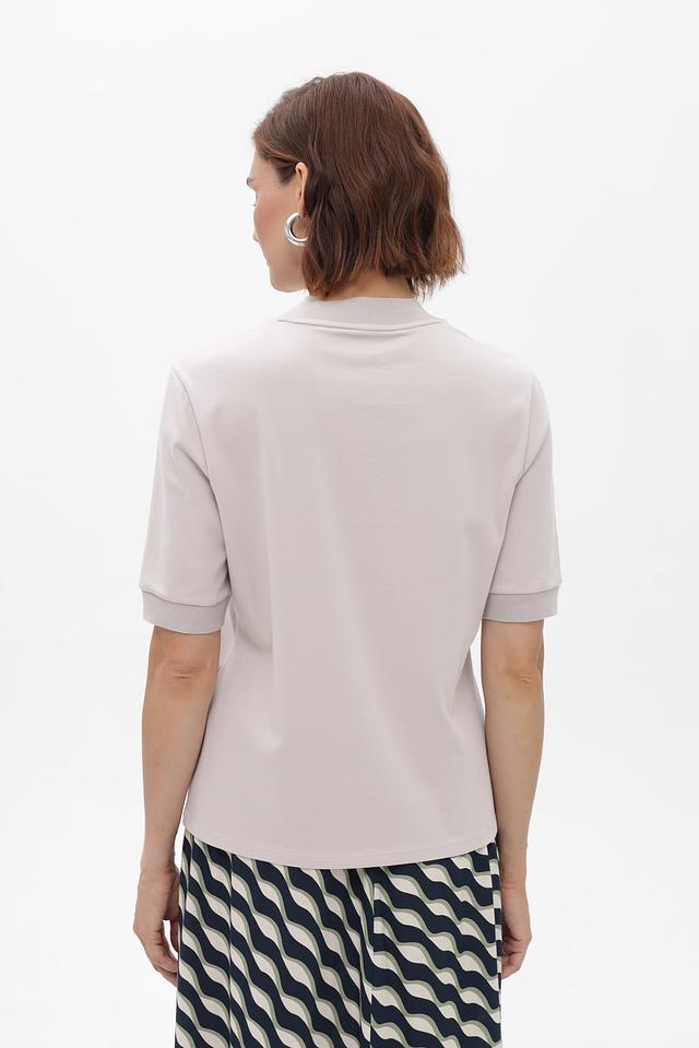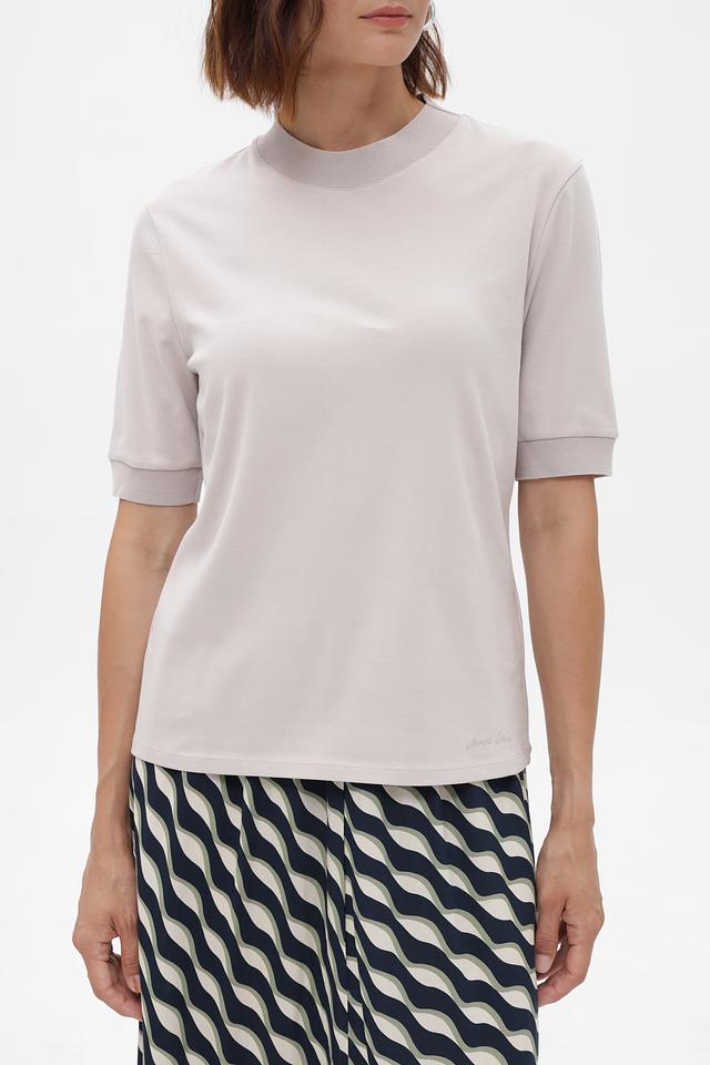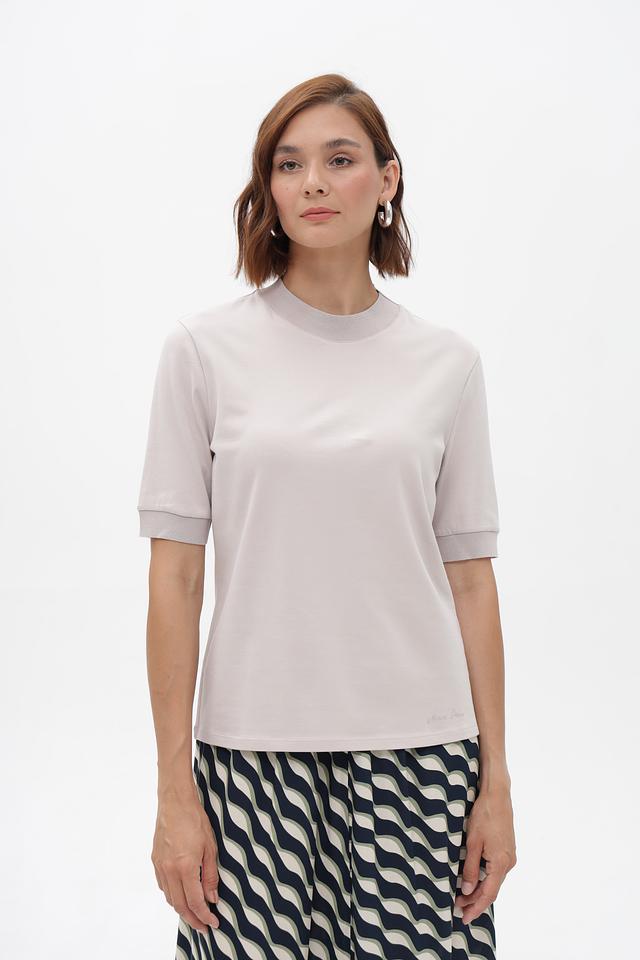 Женская футболка от Marc Cain выполнена в светло-сером цвете. Модель имеет прямой, слегка приталенный крой, который подчеркивает фигуру, не сковывая движений.