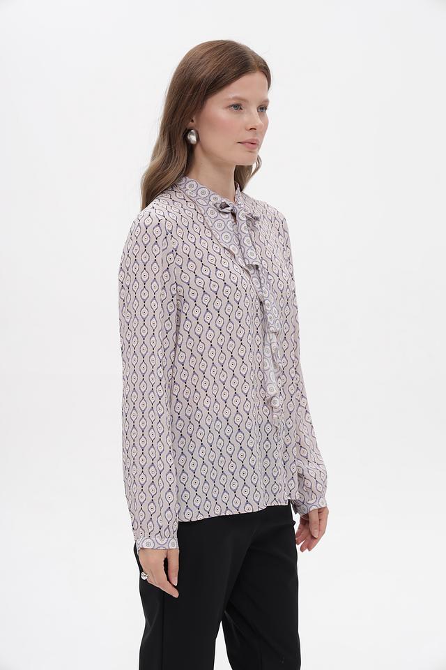 Бежевая блузка Marc Cain Collections с оригинальным принтом и завязками на воротнике. Изготовлена из 100% вискозы, что обеспечивает комфорт и легкость в носке. Состав: вискоза 100%