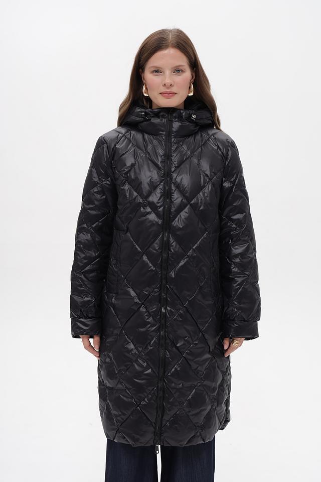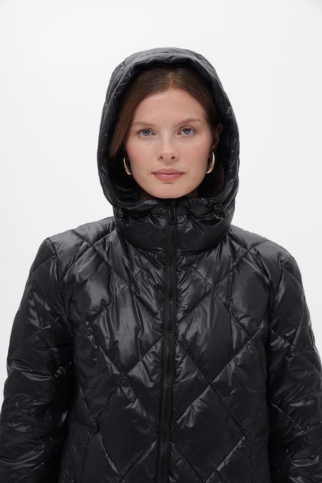 Пальто имеет стеганую текстуру, которая придает ему современный вид. Капюшон защитит от ветра и непогоды. Застежка-молния позволяет легко регулировать степень утепления.