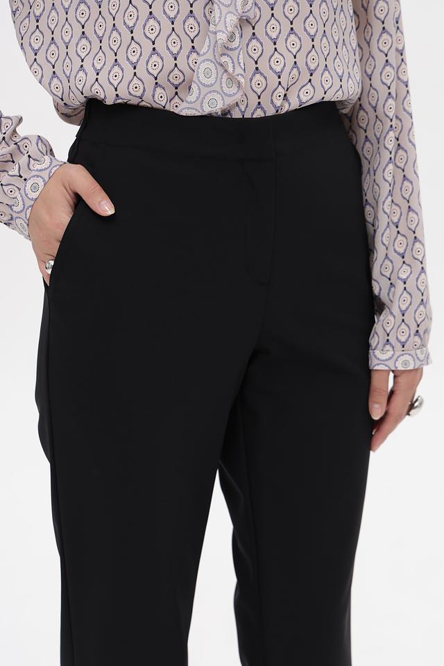 Модель оснащена боковыми карманами и классической застёжкой на молнию и пуговицу. Ткань приятна на ощупь и обеспечивает свободу движений. Эти брюки идеально сочетаются с блузками, рубашками и жакетами, создавая элегантный и стильный образ.
