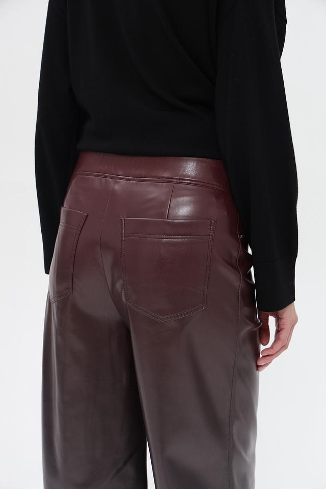 Брюки от Marc Cain бордового цвета, выполнены из искусственной кожи с эластичным поясом. Модель отличается широким кроем и лаконичным дизайном, идеально подходит для создания стильных образов. Состав: полиэстер с полиуретан.покрытием 100%