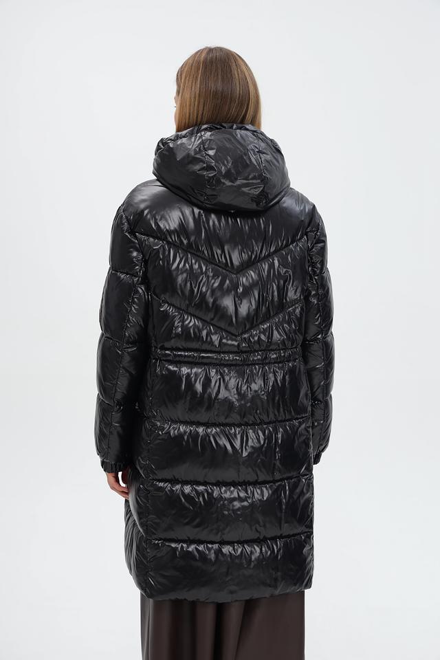 Пальто имеет прямой, приталенный силуэт, который подчеркивает фигуру. Капюшон добавляет функциональности и защищает от непогоды.