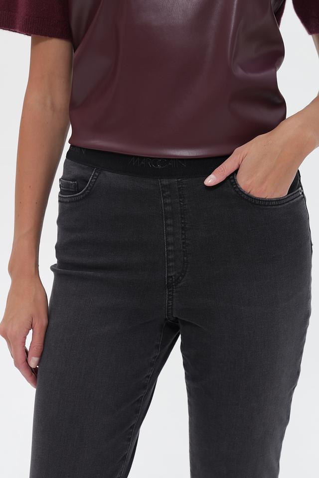Серые джинсы Marc Cain с эластичным поясом. Изготовлены из хлопка с добавлением эластана и эластомультиэстера для комфорта и лучшей посадки. Состав: хлопок 91%, эластомультиэстер 7%, эластан 2%