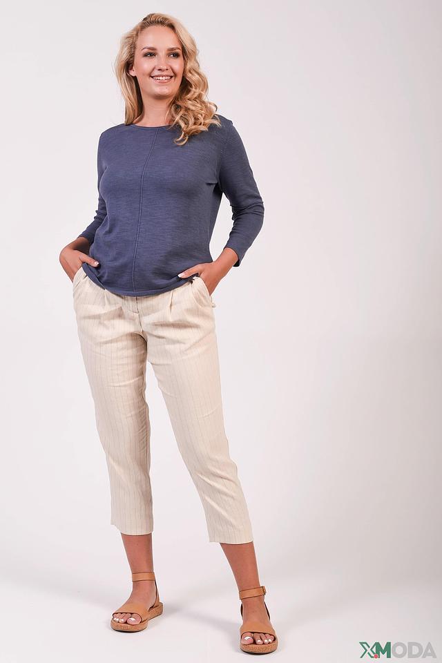 Состав ткани: 60% лен, 36% вискоза, 3% эластан, 1% полиэстер. Лен придает брюкам воздухопроницаемость и натуральность, вискоза – мягкость и приятные тактильные ощущения, а эластан обеспечивает комфортную посадку по фигуре.