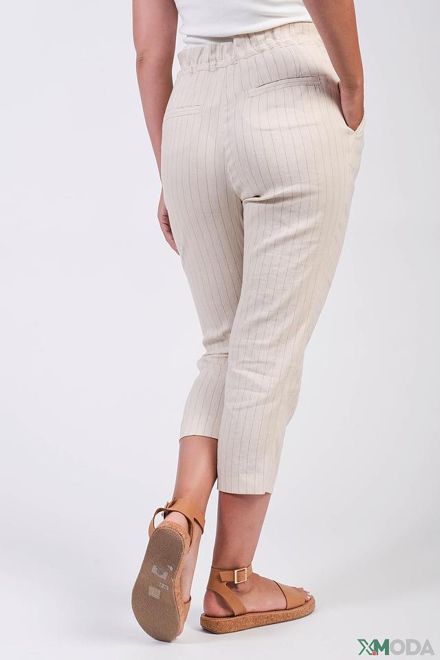 Бежевые брюки от Marc Cain с вертикальной полоской – стильное и комфортное решение для создания элегантного образа. Модель выполнена из лёгкой ткани с добавлением льна и вискозы, обеспечивающей приятные ощущения при носке. Состав: лен 60%, вискоза 36%, эластан 3%, полиэстер 1%