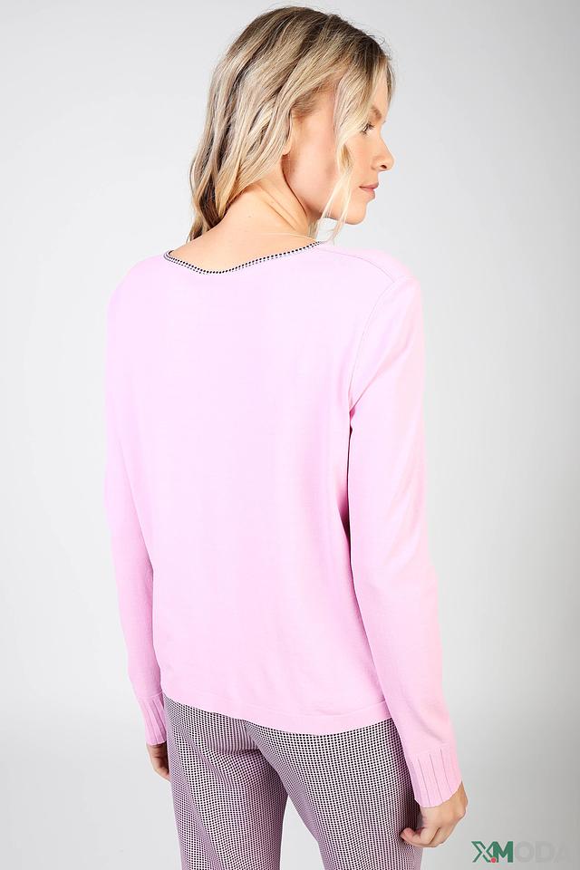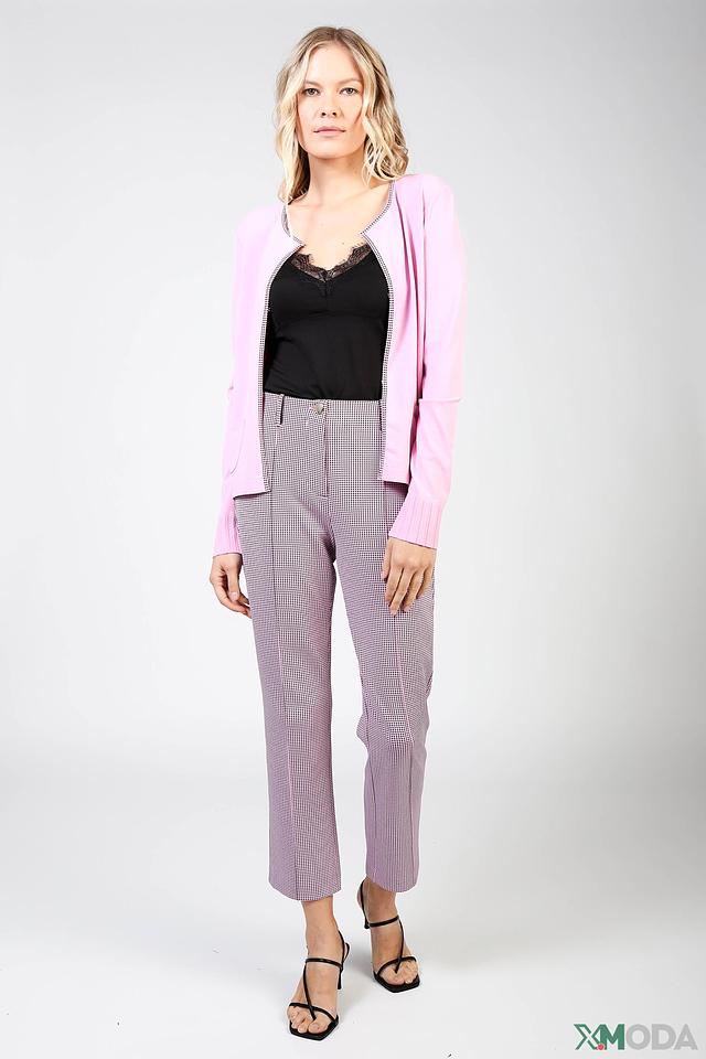 Этот жакет от Marc Cain станет прекрасным дополнением к вашему гардеробу. Он выполнен в нежном розовом цвете и имеет оригинальную застёжку на молнию, выполненную в классический чёрно-белый клетчатый принт "гусиная лапка".
