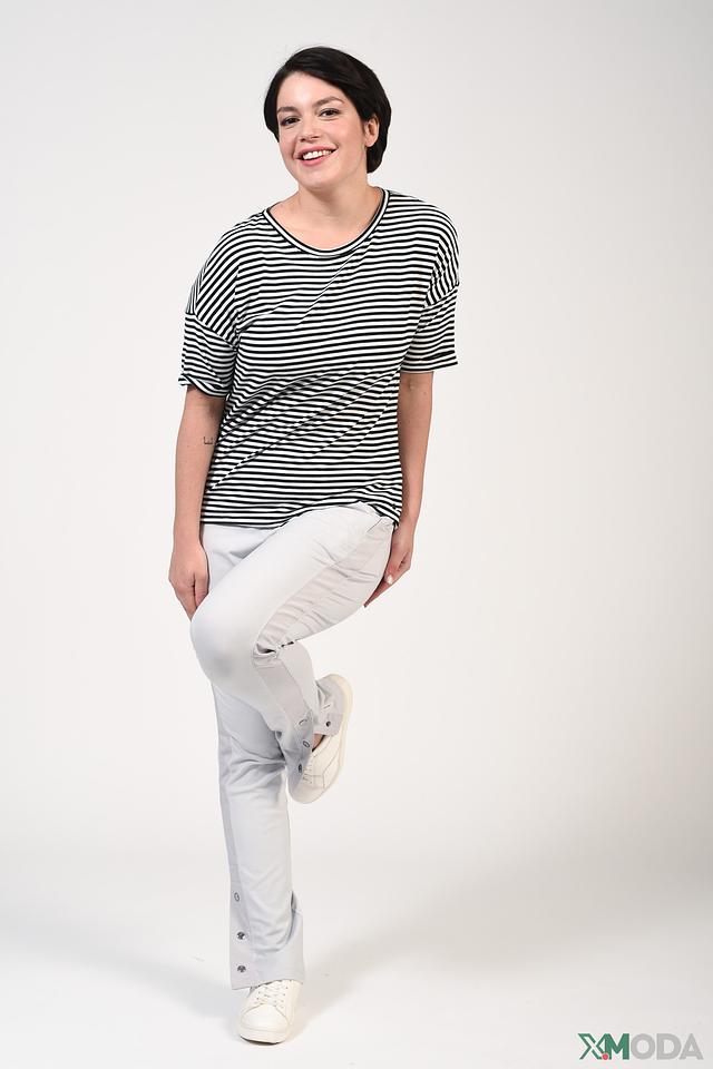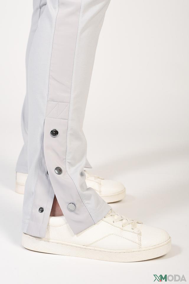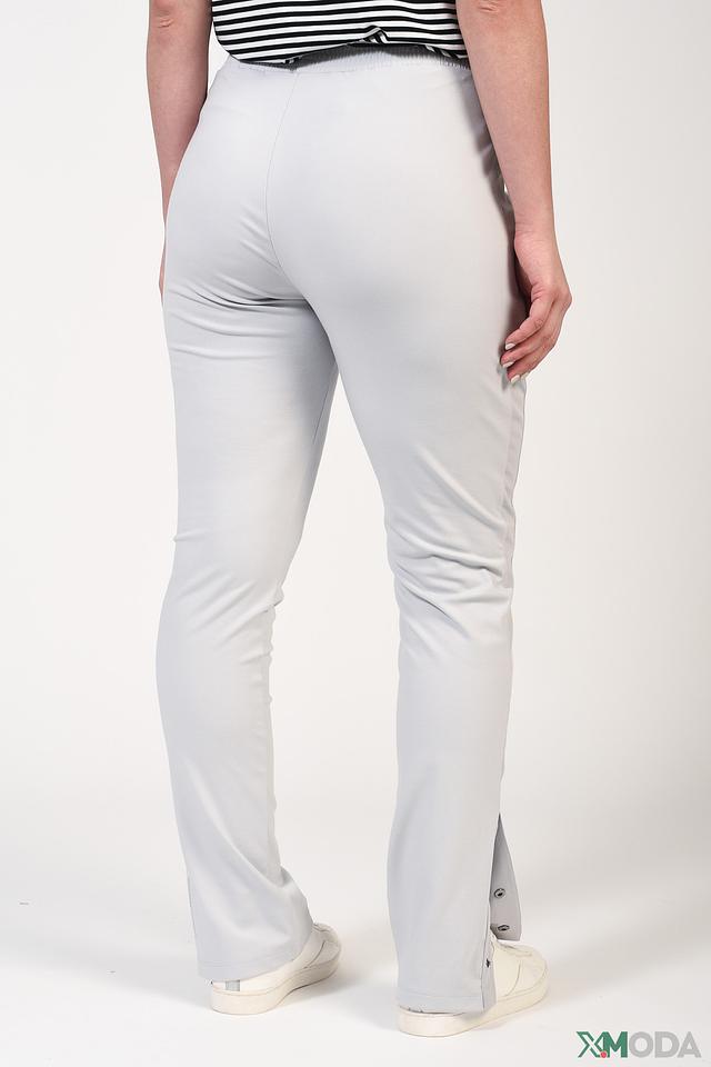 Особенностью модели являются декоративные разрезы в нижней части брюк, застегивающиеся на пуговицы. Этот элемент придает брюкам оригинальный и современный вид. Прямой крой и эластичный пояс обеспечивают комфортную посадку. Брюки прекрасно сочетаются с различными видами обуви и верхней одежды.