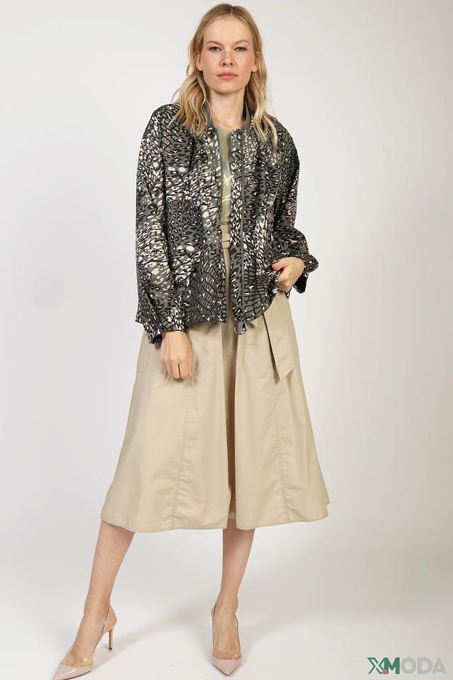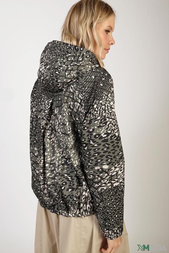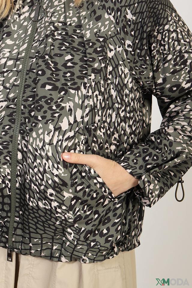 Женская куртка Marc Cain хаки цвета с оригинальным леопардовым принтом. Модель выполнена из 100% полиэстера, имеет капюшон и застегивается на молнию. Состав: полиэстер 100%