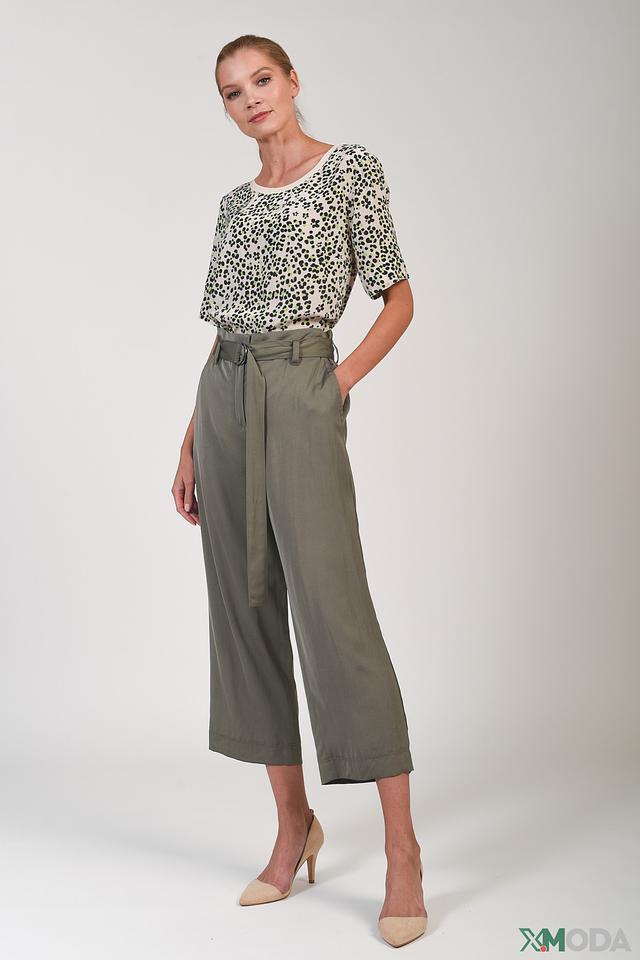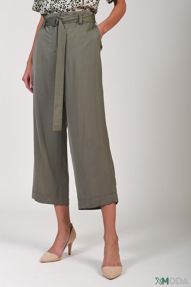 Брюки кюлоты Marc Cain цвета хаки — стильная и комфортная модель с завышенной талией и поясом. Изготовлены из вискозы с добавлением эластана, обеспечивающего удобную посадку и свободу движений. Состав: вискоза 98%, эластан 2%