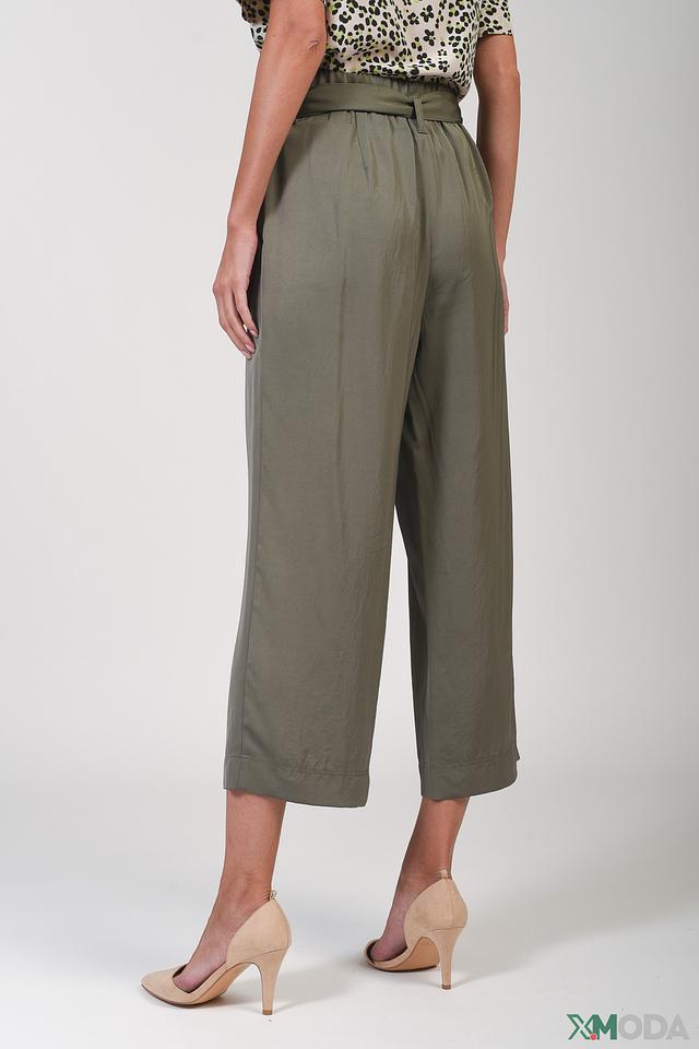 Брюки имеют завышенную талию и широкий пояс с завязками, что подчеркивает фигуру и создает женственный силуэт. Крой кюлотов обеспечивает свободу движений и комфорт в носке.