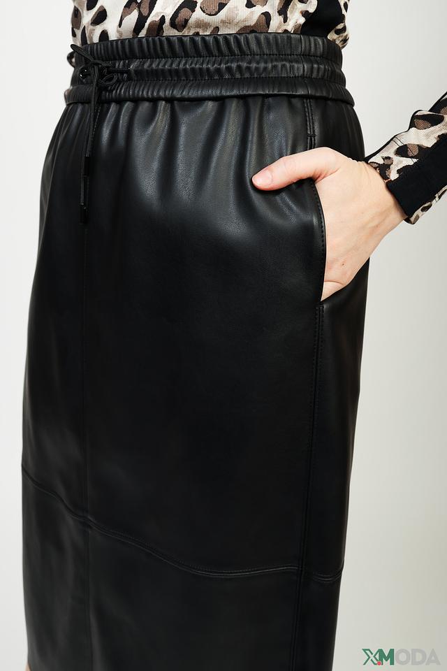 Чёрная юбка от Marc Cain выполнена из искусственной кожи с эластичным поясом. Модель прямого кроя длиной миди с боковыми карманами станет стильным дополнением к вашему гардеробу. Состав: полиэстер 100%, полиуретан.покрытие 100%, Состав_подкладка полиэстер 100%