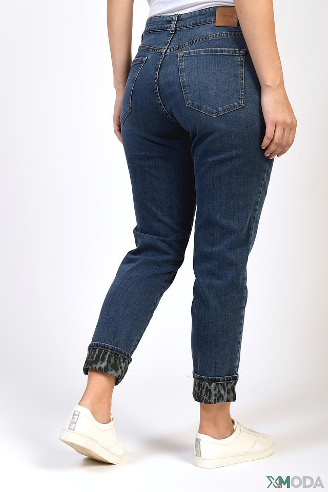 Джинсы имеют прямой крой и стандартную посадку, обеспечивая комфорт в носке. Особенностью модели являются манжеты в нижней части штанин, украшенные леопардовым принтом, что придает им оригинальный и современный вид.