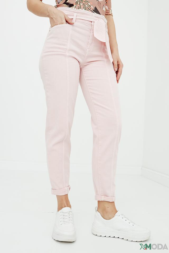 Женские джинсы Marc Cain нежно-розового цвета с завышенной талией и поясом-завязкой. Модель выполнена в актуальном стиле с укороченным силуэтом и подворотами. Состав: хлопок 92%, эластомультиэстер 6%, эластан 2%