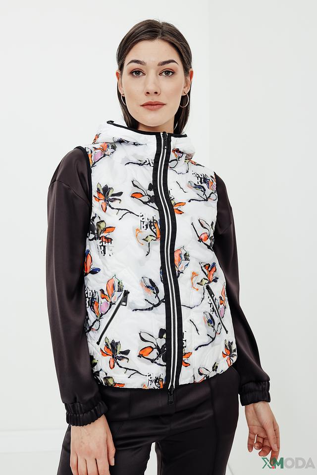 Этот жилет от Marc Cain Sports – прекрасный выбор для тех, кто ценит комфорт и стиль. Жилет выполнен в сочетании чёрного и белого цветов, что делает его универсальным и легко сочетаемым с различными элементами гардероба.