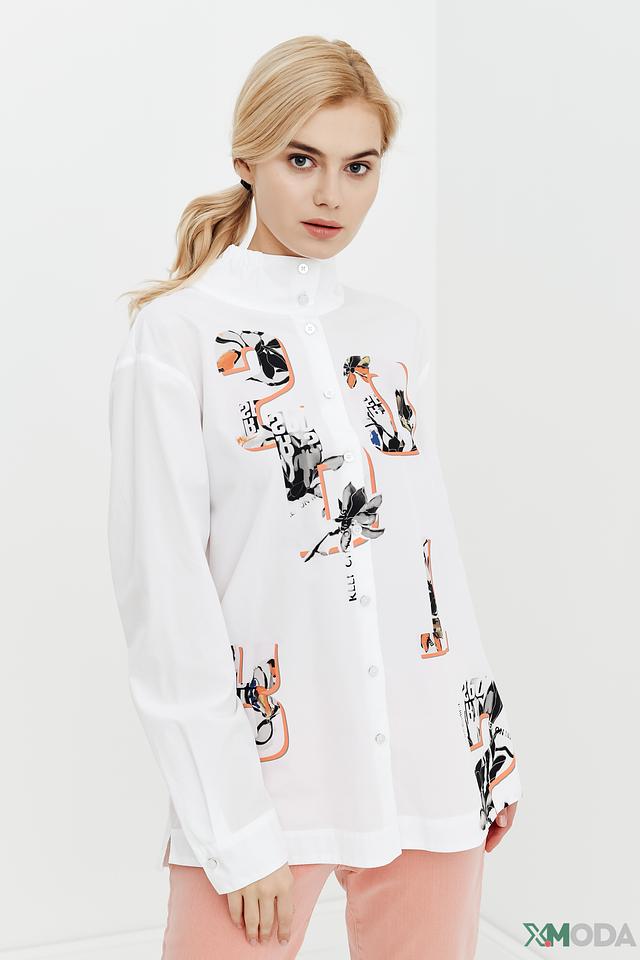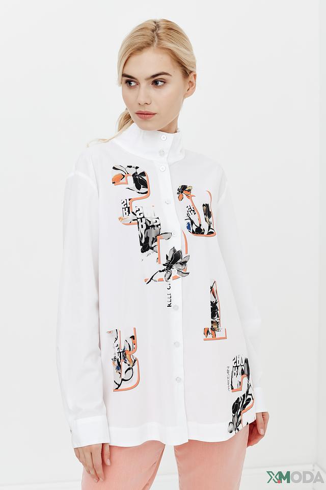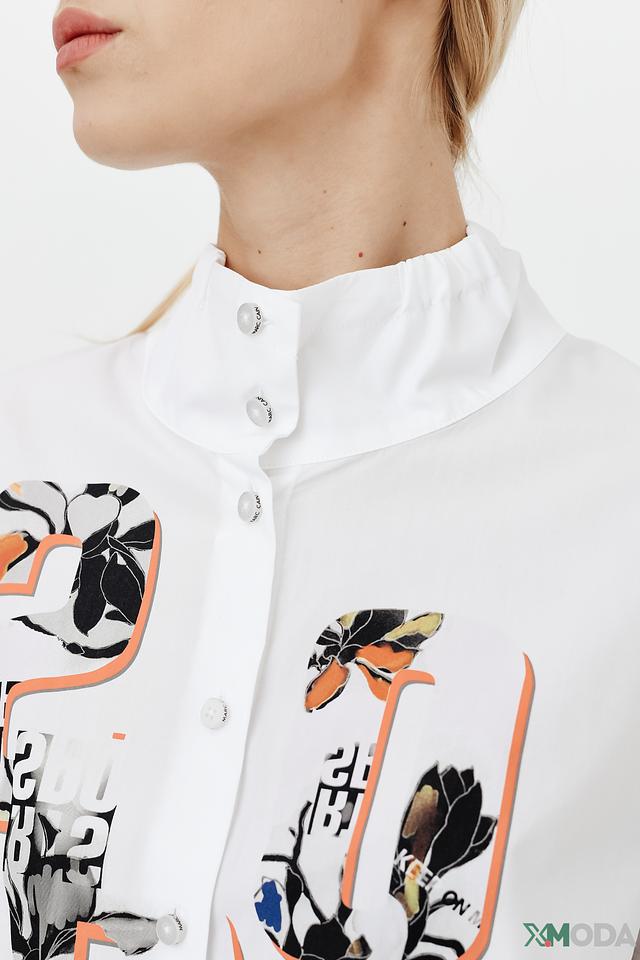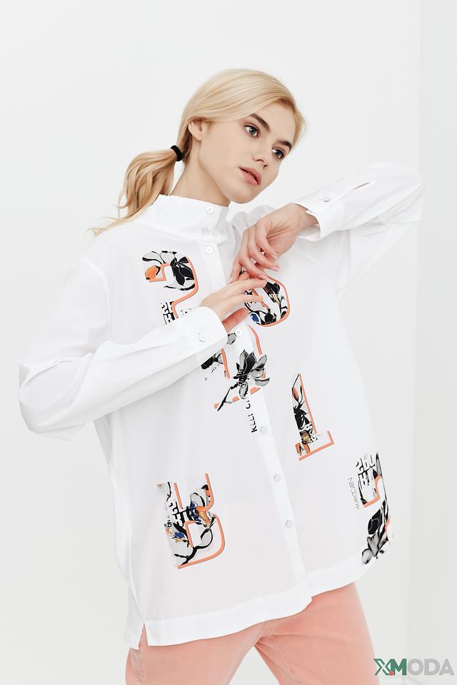 Белая блуза Marc Cain с оригинальным принтом – стильное и комфортное решение для создания повседневного образа. Модель выполнена из 100% хлопка, что обеспечивает приятные ощущения при носке. Состав: хлопок 100%