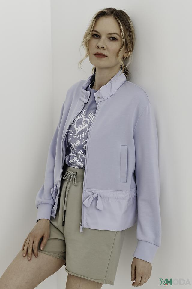 Светло-голубой жакет Marc Cain – стильная и комфортная модель на молнии с утяжками по бокам. Жакет выполнен из мягкой ткани с добавлением лиоцела и эластана, обеспечивающих удобную посадку и свободу движений. Состав: полиэстер 48%, лиоцел 44%, эластан 8%