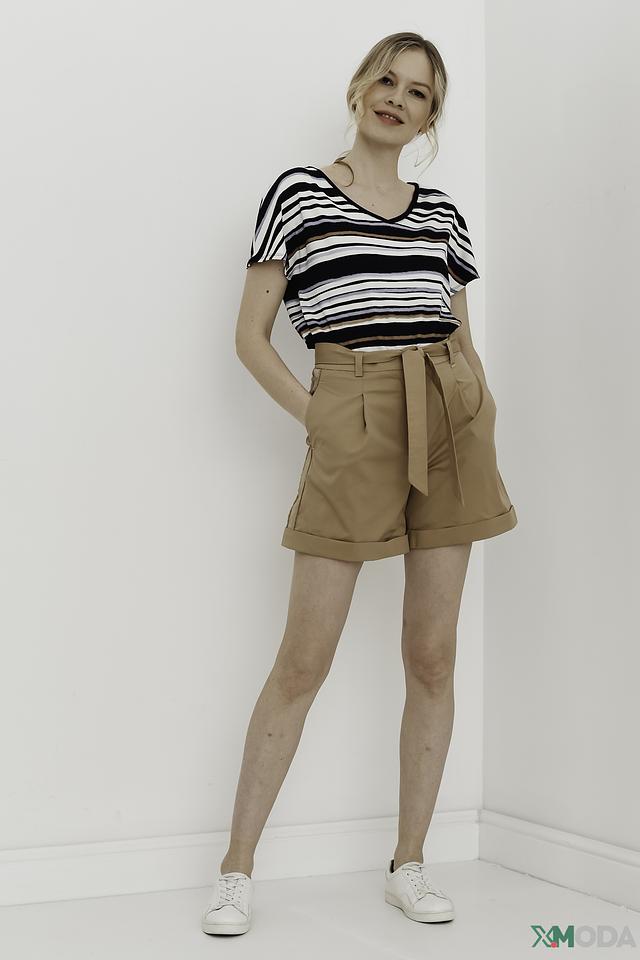 Пуловер имеет удобный V-образный вырез и короткие рукава, что делает его идеальным выбором для тёплой погоды. Изготовлен из высококачественного хлопка (95%) с добавлением эластана (5%), обеспечивающего комфорт и эластичность.