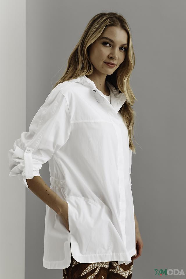 Белая рубашка Marc Cain с капюшоном и длинным рукавом – стильное и комфортное решение для создания повседневных образов. Изготовлена из 100% органического хлопка, обеспечивающего приятные ощущения на коже. Состав: хлопок органич. 100%