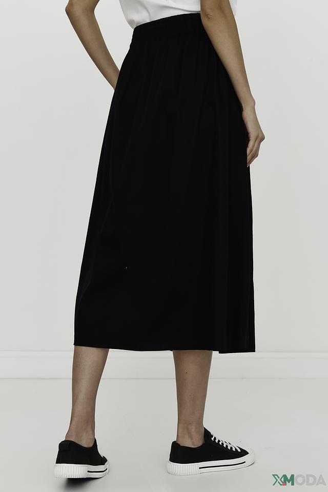Чёрная юбка миди от Marc Cain выполнена из 100% хлопка. Модель имеет эластичный пояс на талии и свободный крой, обеспечивающий комфорт и свободу движений. Состав: хлопок 100%, Состав_подкладка купро 94%, Состав_подкладка эластан 6%