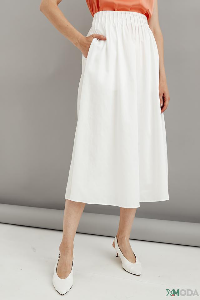 Белая юбка от Marc Cain выполнена из 100% хлопка и имеет удобную завышенную талию с эластичной резинкой. Модель прямого кроя длиной миди с боковыми карманами станет отличным дополнением к вашему гардеробу. Состав: хлопок 100%, Состав_подкладка купро 94%, Состав_подкладка эластан 6%