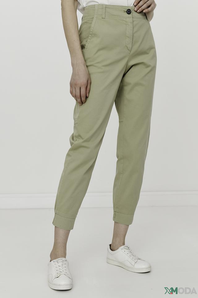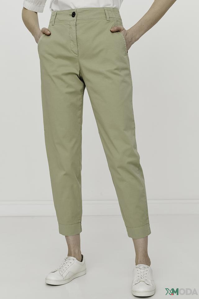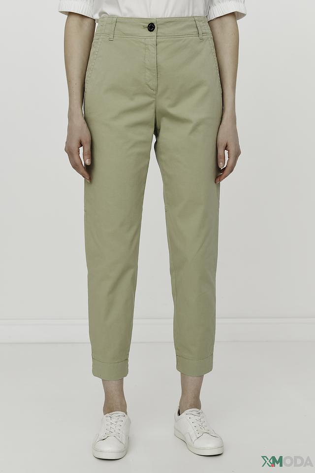 Брюки от Marc Cain цвета хаки — стильная и удобная модель из хлопка с эластаном. Прямой крой и манжеты внизу создают современный образ, а удобный пояс обеспечивает комфортную посадку. Состав: хлопок 98%, эластан 2%