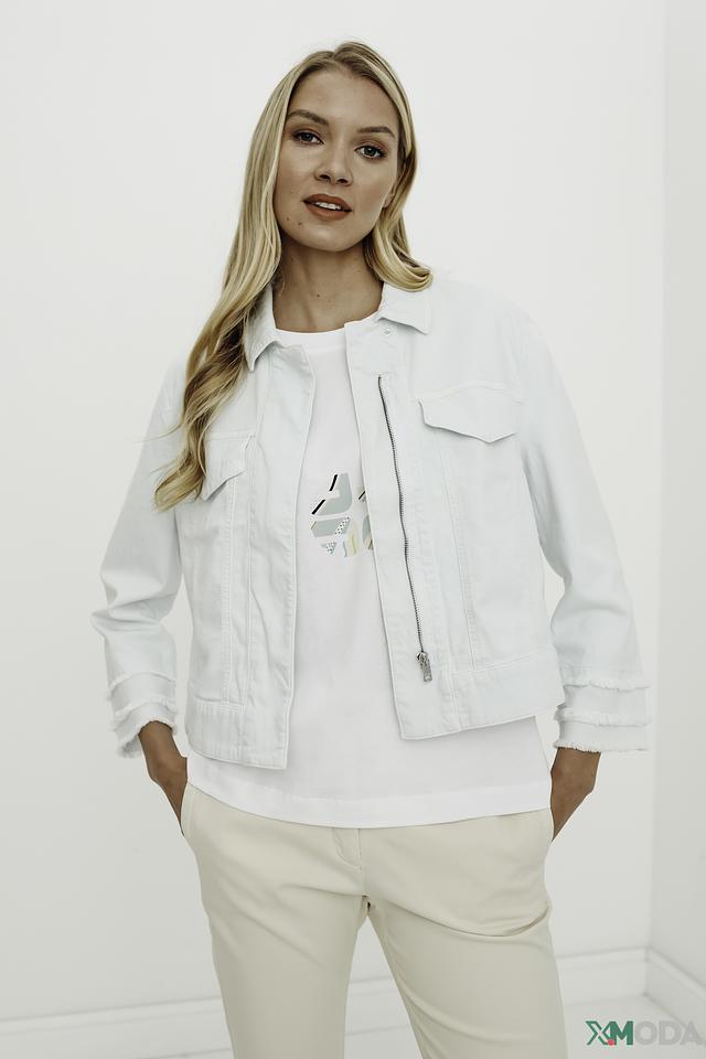 Джинсовый жакет Marc Cain голубого цвета – стильная и удобная модель на каждый день. Жакет имеет классический крой, застегивается на молнию и дополнен накладными карманами. Изготовлен из хлопка с добавлением эластана. Состав: хлопок 97%, эластан 3%