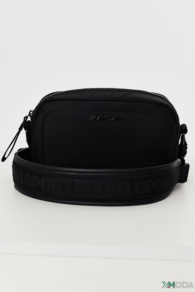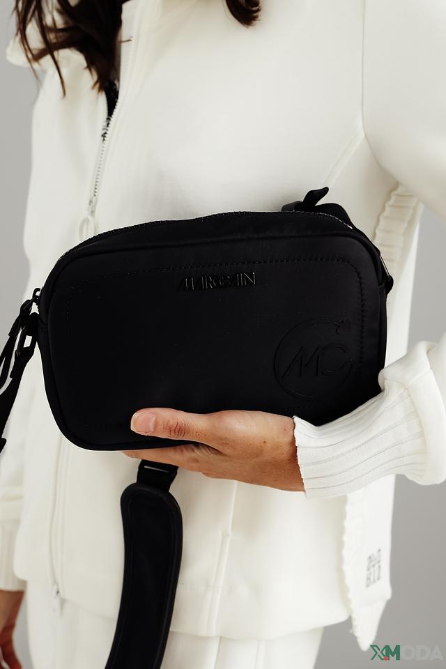Регулируемый плечевой ремень обеспечивает комфортное ношение сумки через плечо или на груди. На передней панели сумки расположен логотип бренда, выполненный в виде тиснения. Застёжка-молния обеспечивает надёжную защиту содержимого.