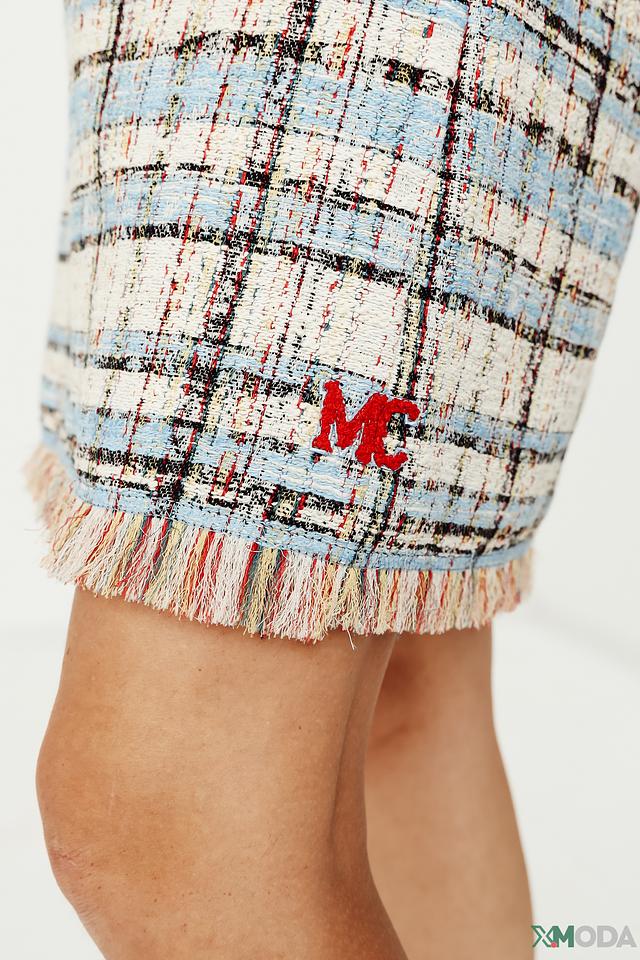 Особенностью юбки является декоративная бахрома по нижнему краю, придающая ей лёгкость и динамичность. На передней части юбки расположен логотип бренда "MC".