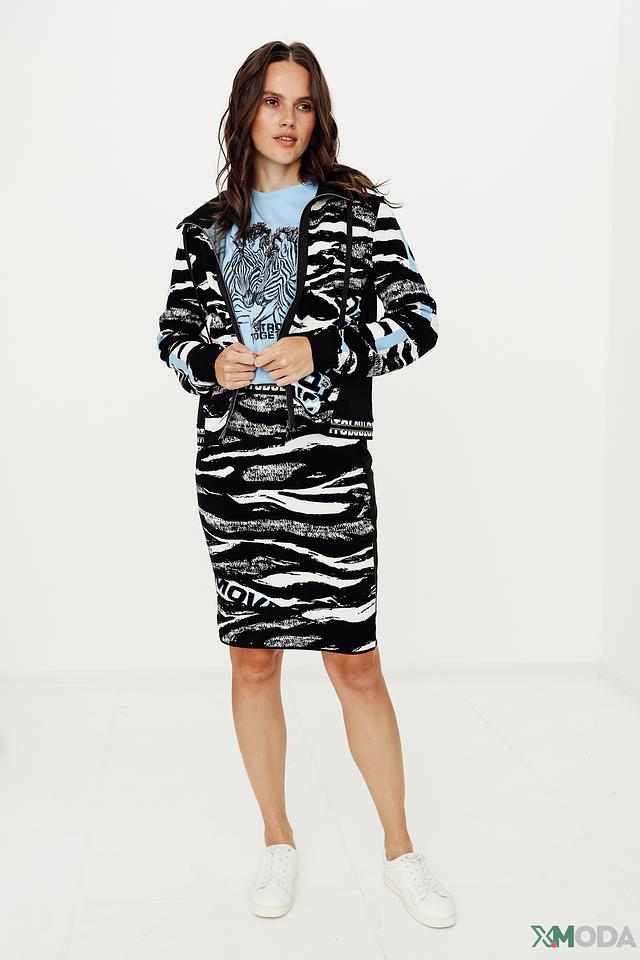 Юбка Marc Cain Sports чёрно-белого цвета с принтом "зебра" станет стильным дополнением к вашему гардеробу. Модель выполнена из эластичного трикотажа, обеспечивающего комфортную посадку и свободу движений. Состав: вискоза 95%, эластан 5%