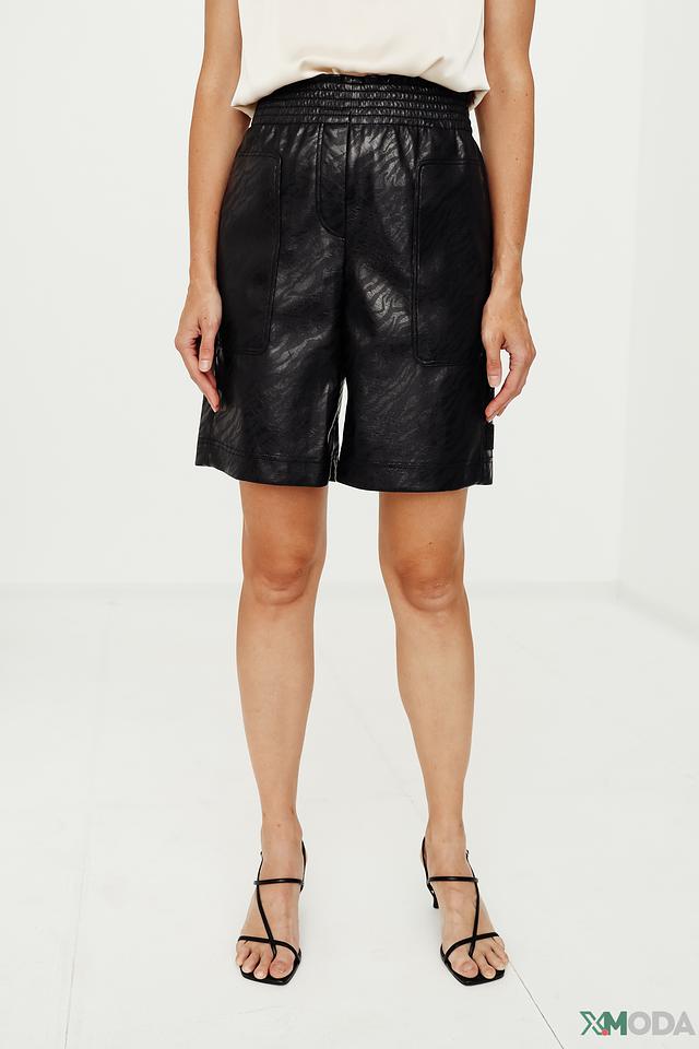 Шорты имеют завышенную талию и эластичный пояс, обеспечивающие удобную посадку по фигуре. Функциональные карманы добавляют практичности. Текстура материала имитирует натуральную кожу, придавая изделию особый шарм.