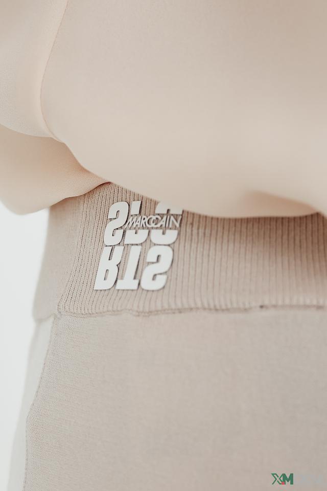 Отличительной особенностью модели является вертикальная полоса с логотипом бренда Marc Cain Sports, расположенная вдоль штанины, что придает брюкам современный и узнаваемый вид. Эластичный пояс обеспечивает надежную фиксацию и комфорт при носке.
